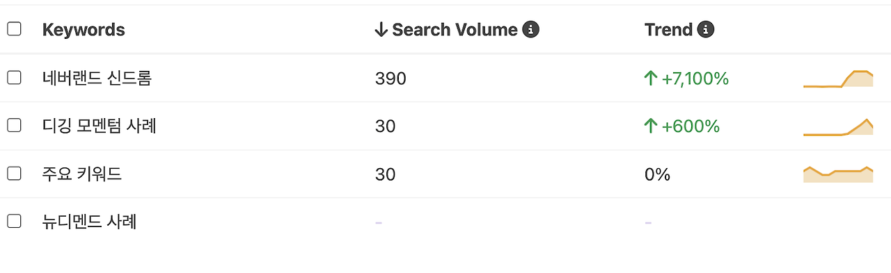 네버랜드 신드롬의 경우는 이 외 3개의 키워드와 비교했을때 그 검색량의 차이가 압도적이기 때문에 우선적으로 네버랜드 신드롬의 키워드를 타겟한 글을 써줍니다.