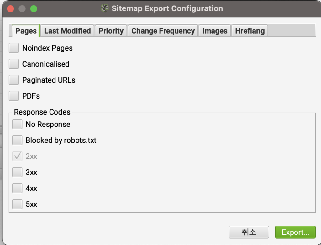 크롤링이 완료가 되면, Sitemaps > XML Sitemap > Export… 하시면 파일이 생성되며, 이 파일도 마찬가지로 루트 디렉토리에 올려주시면 됩니다.