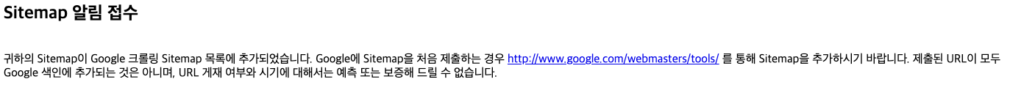 다만, 이런 알림 문구에서 보실 수 있는 것과 같이 이미 최초에 한번은 구글 서치콘솔을 통해 제출을 한 후에 업데이트 사항을 제출하는 경우 사용하는 방법입니다.